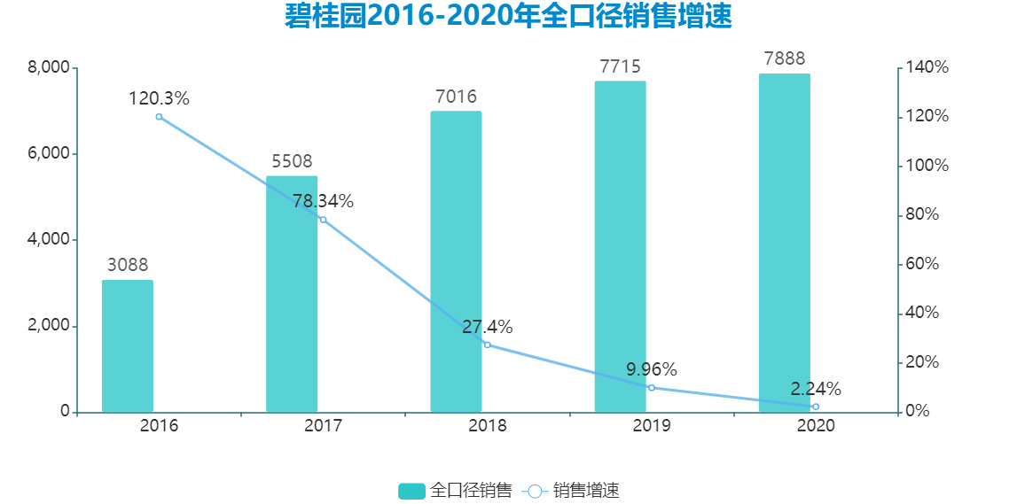 觀點(diǎn)指數(shù)發(fā)布的2020中國(guó)房地產(chǎn)銷售TOP100榜單顯示,碧桂園2020年實(shí)現(xiàn)全口徑銷售金額7888.1億元,較2019年增長(zhǎng)2.24%。