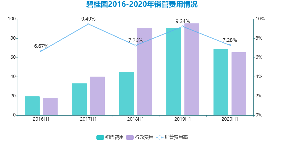 費(fèi)用率方面,2019年因會(huì)計(jì)準(zhǔn)則調(diào)整、新業(yè)務(wù)投入推廣等,碧桂園銷管費(fèi)用率曾攀升至9.24%,也引來(lái)財(cái)務(wù)官伍碧君在年度股東會(huì)時(shí)表示,希望2020年銷售及管理費(fèi)用能控制在7%以內(nèi)。