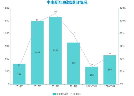 截至2019年末,中南累計土儲約4226萬平方米;于2020年前三季度,新增了70個項目,土儲累計4410萬平方米。