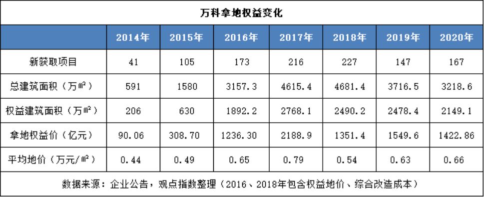 最終,萬(wàn)科2020全年新增167宗地,同比增加20宗;計(jì)容建筑面積3218.6萬(wàn)平方米,累計(jì)新增權(quán)益地價(jià)1422.86億元,同比分別下降13.4%、8.2%,投資力度出現(xiàn)下降。