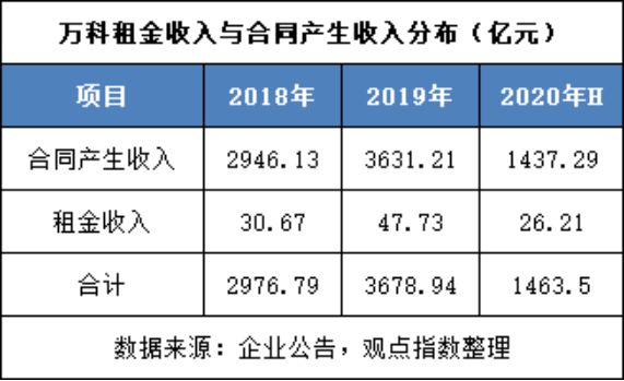 同時(shí),萬(wàn)科也在這兩年逐步披露租金收入情況,2018年、2019年及2020年上半年這部分收入分別為30.67億元、47.73億元、26.21億元。