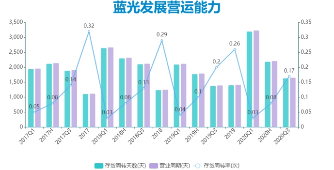 財(cái)務(wù)上明顯的變化是,2020年已經(jīng)公布財(cái)報(bào)中,藍(lán)光存貨周轉(zhuǎn)率或營(yíng)業(yè)周期都有所變慢。