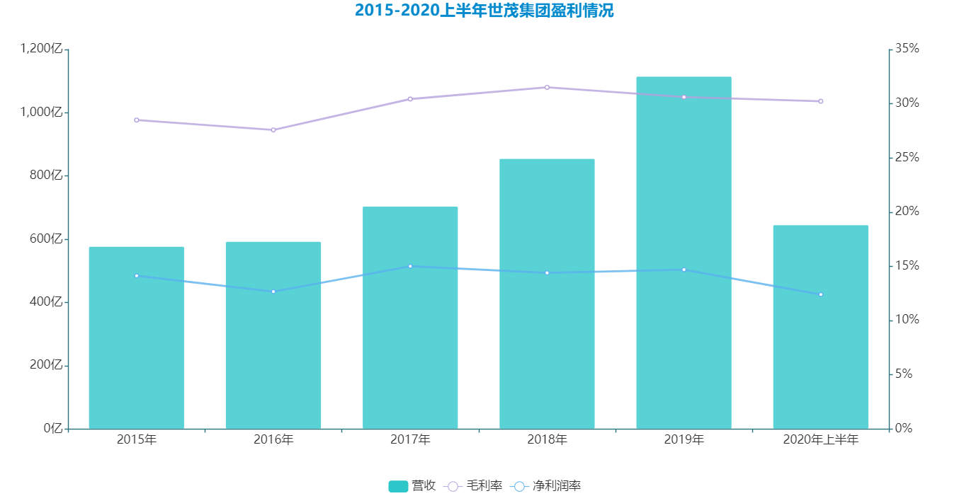 2020上半年,疫情影響項目結轉進度背景下,世茂營收、利潤仍錄得小幅增長,但凈利潤率略有下滑,錄得12.4%(2019年同期為13.38%)。