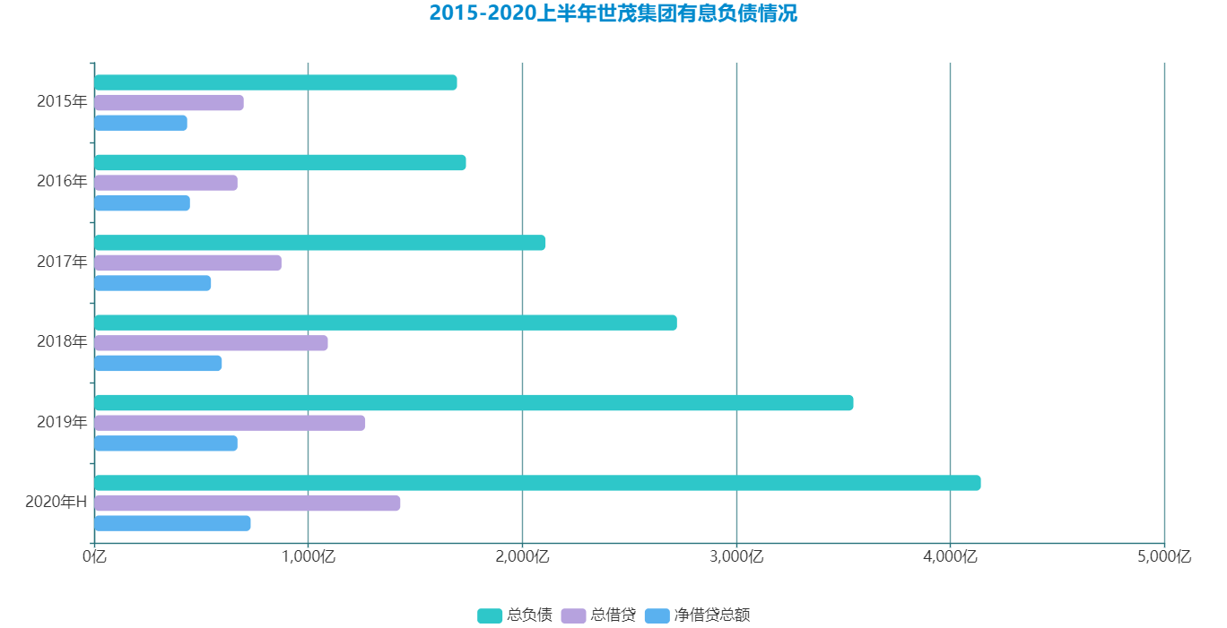 2020年上半年數據顯示,世茂僅一項指標超出閾值,因此有息負債年增速需控制在10%以內。