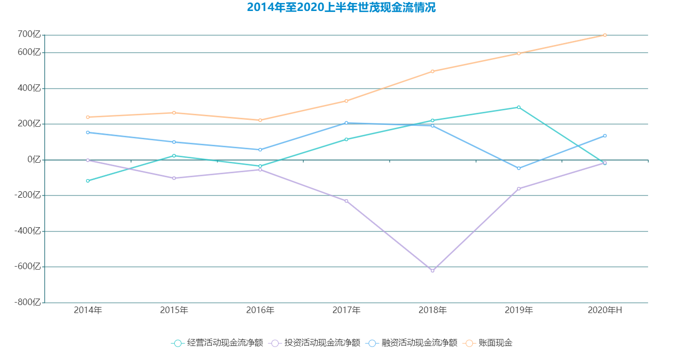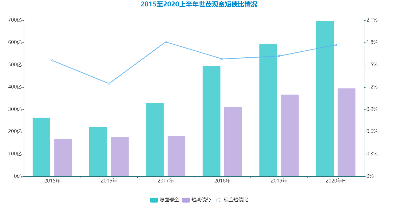 世茂的財務數據向來以穩(wěn)健著稱,賬面現金較為充裕,2020上半年達到699.21億元,完全覆蓋短期債務。