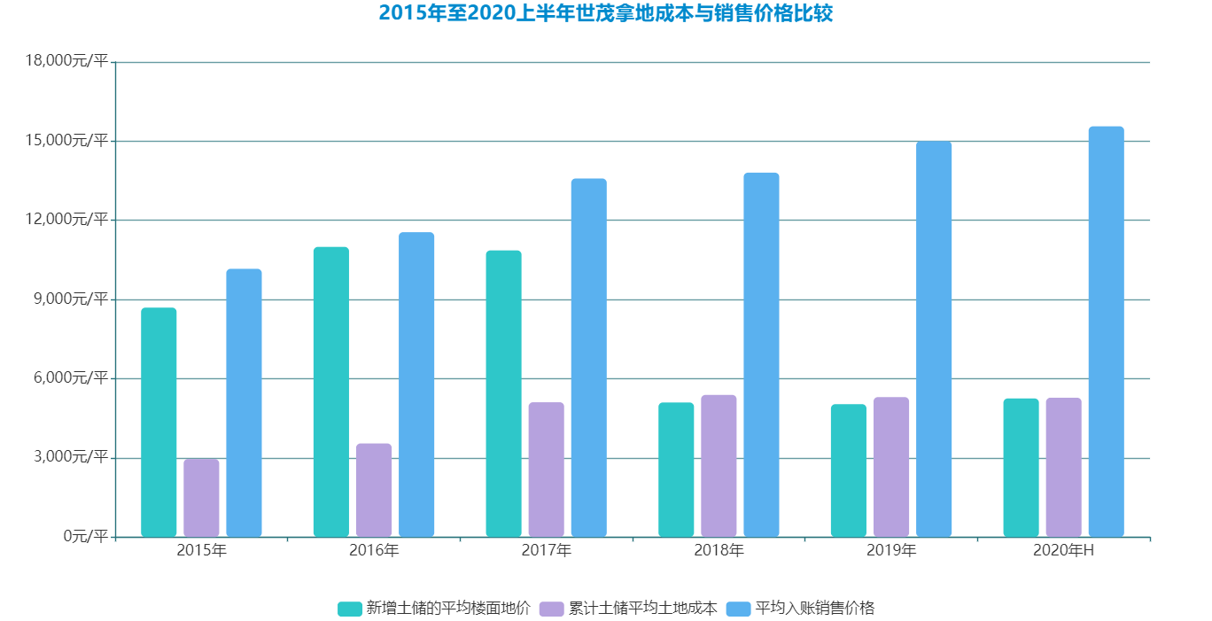 從拿地成本考量這家企業(yè)擴張軌跡時會發(fā)現,世茂2016年至2017年新增土儲的平均樓面地價超過1萬元/平方米。