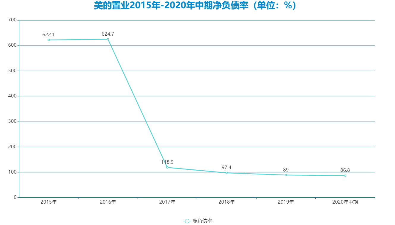 2020年中期,美的置業(yè)凈負債率降至86.8%,雖然和2019年相比降幅并不算太高,但從趨勢來看卻一直穩(wěn)定下降。