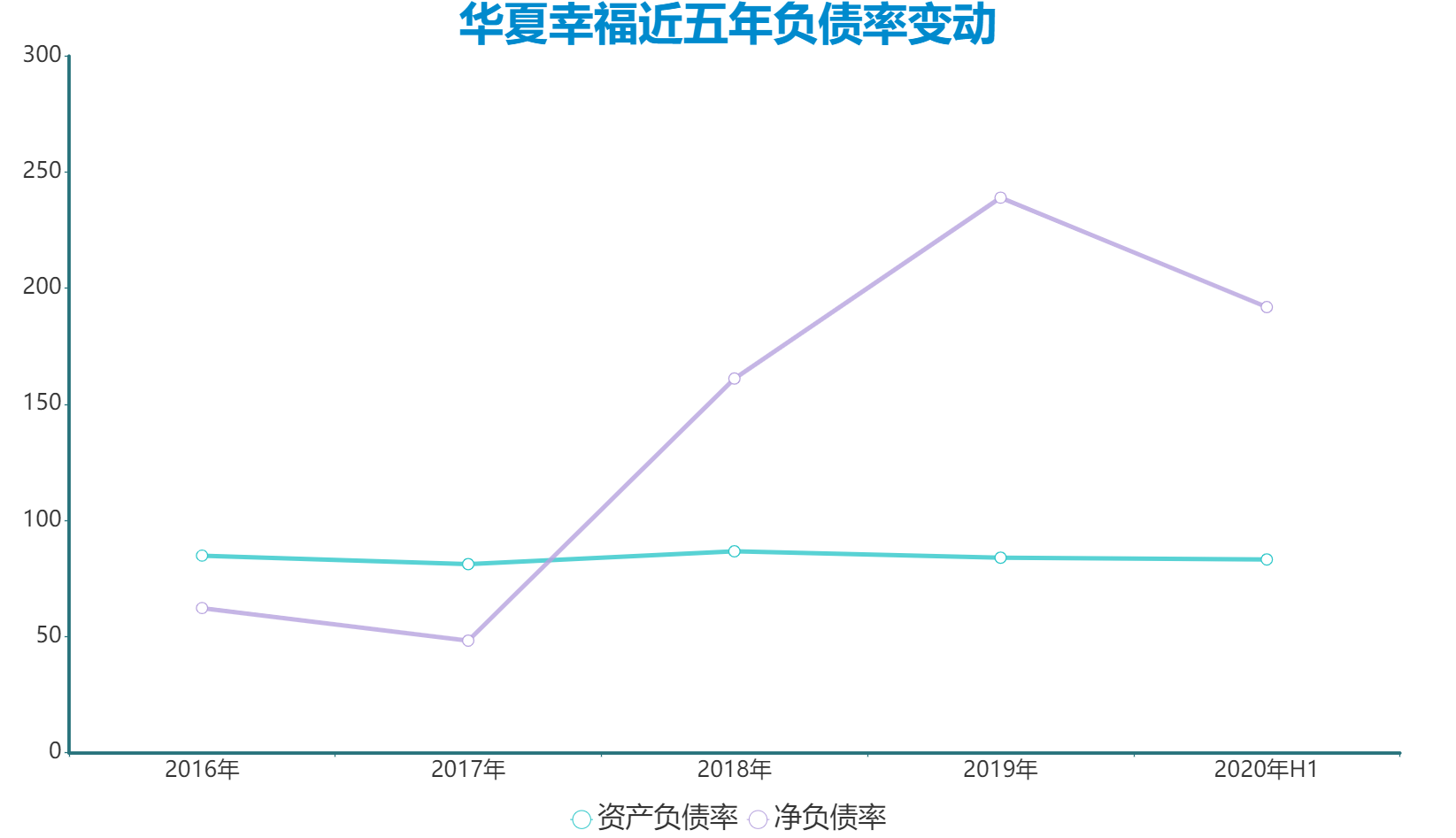 凈資產(chǎn)負債率也因此開始上升,2019年和2020年中期分別為239%、191.85%。