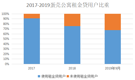 蛋殼公寓招股書數據顯示,截至2019年前9個月,蛋殼租金貸占總租金收入67.9%。值得注意的是,2017-2019年前9月蛋殼公寓租金貸占比有降低趨勢,但2020年一季報中,并未透露最新數據。