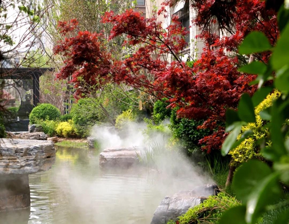 徐州榮盛城三期一批,在園林設(shè)計(jì)上就別出心裁,在水系及周邊植物搭配霧森系統(tǒng)實(shí)現(xiàn)霧化效果,從而在蘇北大地上完美再現(xiàn)江南園林的韻味;在小區(qū)園林的水系平臺(tái)邊側(cè),運(yùn)用新的栽植手法,將不同顏色的苗木四面倒坡栽植,成型后也會(huì)有更好的景觀效果。園林中精雕細(xì)琢的亭臺(tái)水榭,也給業(yè)主的居住帶來了更好的精神體驗(yàn)。