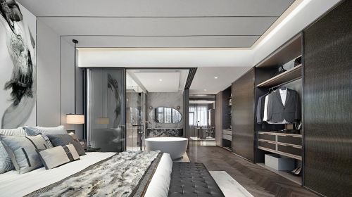 主臥套房一般包含臥室、衛(wèi)生間、衣帽間,三個(gè)主要功能空間。熙堂尚院·名筑告別了傳統(tǒng)的設(shè)計(jì),將衛(wèi)生間和衣帽間與主臥的邊界融合,擴(kuò)大了生活空間,提高了生活品質(zhì)。