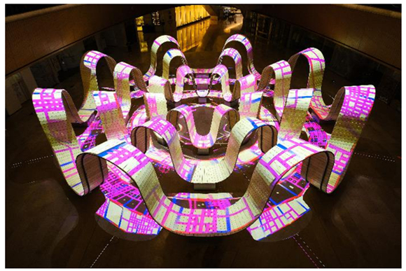 這也是采用數(shù)字投影技術(shù)的Mapping裝置首次在廣州的商業(yè)空間展示,數(shù)字藝術(shù)美學(xué)激活了作品本身循環(huán)往復(fù)、無(wú)限流動(dòng)的造型特征,為公眾帶來(lái)與眾不同的觀看及互動(dòng)樂趣,同時(shí)這也是廣州太古匯創(chuàng)新應(yīng)用數(shù)字藝術(shù),打造時(shí)尚的年輕化品牌形象的大膽嘗試。