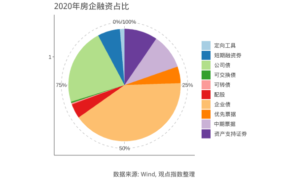 從公開融資渠道看,2020年房企融資類別中金額最多的是企業(yè)債,其中絕大多數為在香港、新加坡發(fā)行的中資離岸債券。