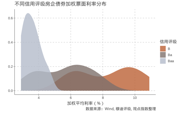 根據不同信用評級的房企來看,可以發(fā)現(xiàn)投資級(Baa)房企優(yōu)勢較為明顯,但同時也可看到,部分Ba級房企依然可以有與投資級房企相當的利率,這是由于債券利率還會受到債券類別、期限、抵押品、特殊條款等多種因素影響。