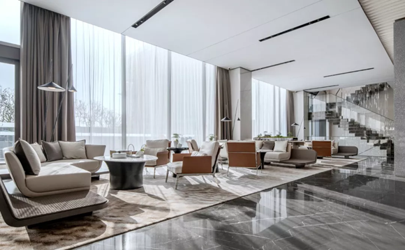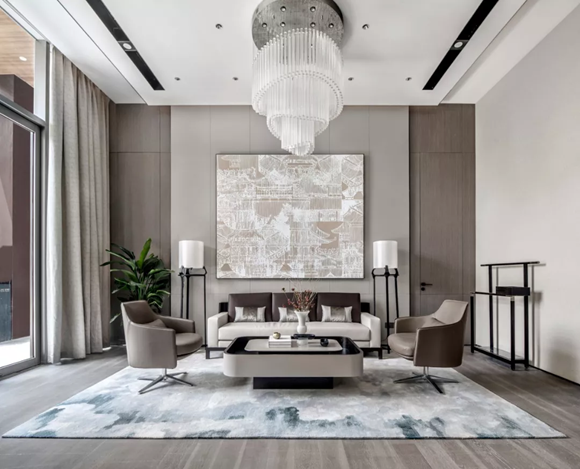 悅海府售樓處,運(yùn)用極簡(jiǎn)現(xiàn)代藝術(shù)的設(shè)計(jì)手法,融入當(dāng)代藝術(shù)與人文極簡(jiǎn),在空靈與東方意境中凝練出獨(dú)特的空間氣質(zhì)。設(shè)計(jì)師嘗試用當(dāng)代簡(jiǎn)約精神重塑東方文化的韻律之美,拂拭去顯性東方符號(hào),用去符號(hào)化的設(shè)計(jì)手法,通過(guò)刻畫(huà)自然無(wú)形的氛圍,回歸當(dāng)代設(shè)計(jì)的精神本源。