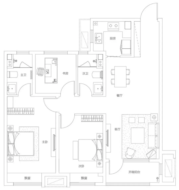這一次,青特·星城主打建面約113—142㎡高層產(chǎn)品,以建面約113㎡三室兩廳兩衛(wèi)戶型為例,格局全明方正,南北通透??臻g設(shè)計緊湊,沒有絲毫浪費??筒蛷d一體連接闊朗陽臺,采光通風(fēng)俱佳。入戶獨立玄關(guān)設(shè)計,收納空間更合理。三開間朝南,雙飄窗設(shè)計,贈送空間大。北向書房可隨意改造,空間靈活多變,可滿足不同居住需求。