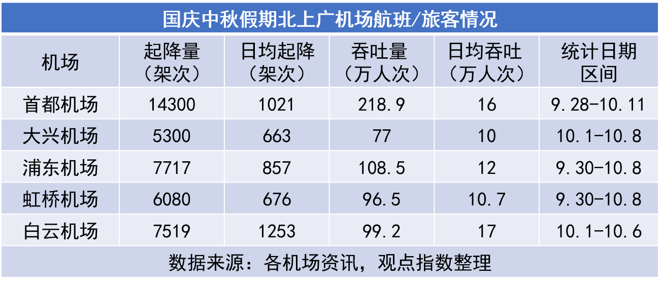 廣州白云機場則在國慶中秋黃金周前6天保障航班7519架次,運輸旅客99.2萬人次。其中出發(fā)高峰10月1日和返程高峰10月6日均超17萬人次,創(chuàng)復(fù)產(chǎn)復(fù)工后單日運輸旅客量新高。