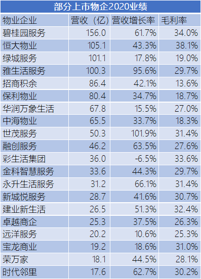截至目前,上市物企對(duì)2020年業(yè)績(jī)的披露已基本完成。盡管2020年各行各業(yè)都籠罩在新冠疫情的陰影之下,物業(yè)服務(wù)行業(yè)憑借自身高抗風(fēng)險(xiǎn)性不僅經(jīng)受住了考驗(yàn),成為資本市場(chǎng)聚光燈下的新星,業(yè)績(jī)上也實(shí)現(xiàn)了大幅度增長(zhǎng)。
