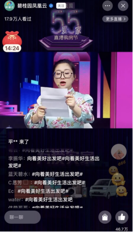 通過本次直播購房節(jié),碧桂園希望讓更多用戶知曉、了解并認(rèn)可其在滿足不同消費群體、創(chuàng)造“美好人居產(chǎn)品”方面的積極努力。換言之,用升級煥新的營銷方式,推介不斷迭代的產(chǎn)品。
