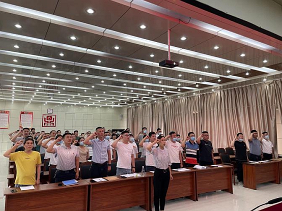 演練現(xiàn)場(chǎng),榮萬(wàn)家川渝總經(jīng)理熊松帶領(lǐng)參演物業(yè)人重溫入黨誓詞,并就建黨100周年安保工作誓師動(dòng)員,“百煉出精兵,榮萬(wàn)家的物業(yè)人聽(tīng)黨指揮、實(shí)戰(zhàn)實(shí)訓(xùn)、淬練精兵,履職盡責(zé),以優(yōu)異成績(jī)慶祝建黨100周年”。