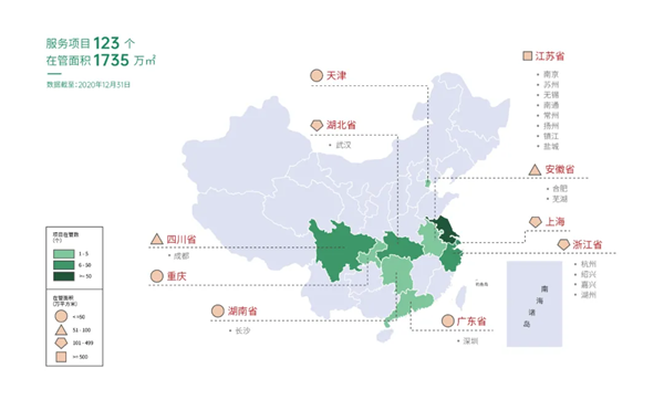 截至2020年12月31日,朗詩(shī)綠色生活的業(yè)務(wù)涵蓋了21個(gè)城市,其中有15個(gè)位于長(zhǎng)三角地區(qū),123項(xiàng)在管項(xiàng)目中,100項(xiàng)位于長(zhǎng)江三角洲,在管面積占比高達(dá)85.2%,區(qū)域深耕優(yōu)勢(shì)明顯。長(zhǎng)三角地區(qū)作為朗詩(shī)綠色生活大本營(yíng),也是未來(lái)可持續(xù)發(fā)展核心戰(zhàn)略地區(qū),隨著物管行業(yè)越來(lái)越規(guī)范,利用品牌及資本優(yōu)勢(shì)進(jìn)行全國(guó)范圍擴(kuò)張,同樣也是未來(lái)的重要發(fā)展方向。