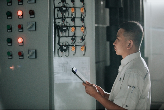 龍湖智慧服務(wù)工程人員正在巡檢設(shè)備房