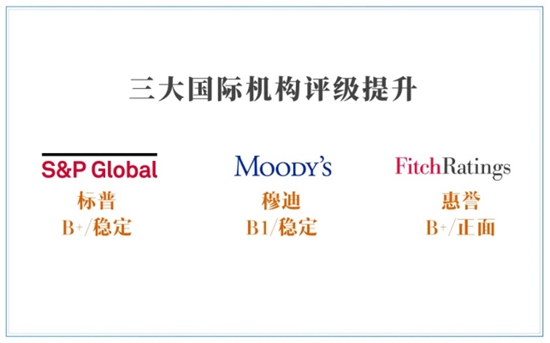 2021年上半年,金輝先后獲得三大國際評級機構(gòu)上調(diào)或新增評級的認可。其中標(biāo)普上調(diào)公司主體信用評級至“B+”,展望“穩(wěn)定”;穆迪信用首次將“B1”評級授予金輝,并給予“穩(wěn)定”展望;惠譽上調(diào)公司評級至“B+”,展望“正面”。同期,金輝還因優(yōu)異的市場表現(xiàn)在2021年2月被新增至恒生綜合指數(shù)成份股名單中,隨后成為港股通股票,并成為新納入MSCI中國小型股指數(shù)成份股的企業(yè)之一。