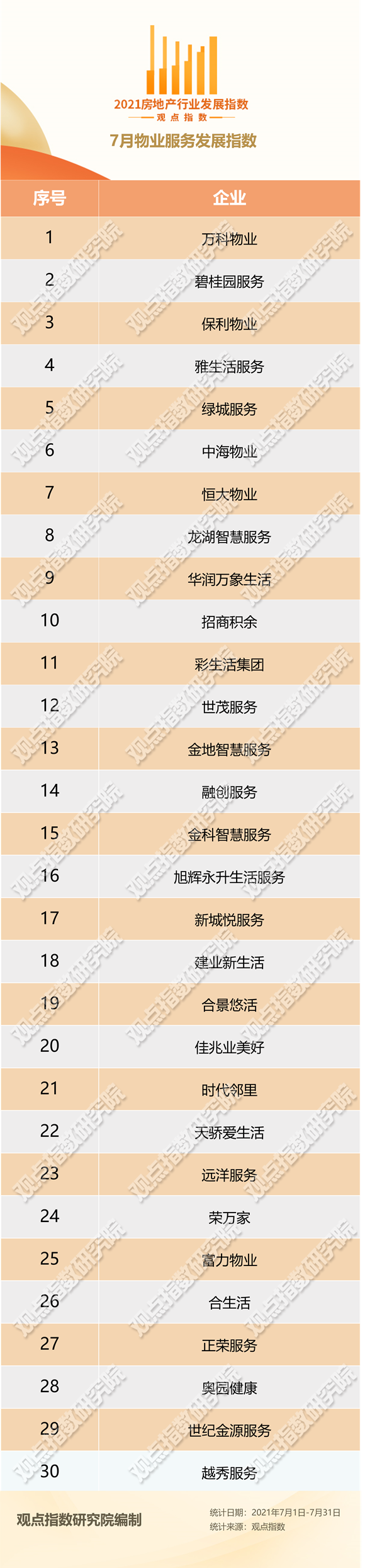 據(jù)觀(guān)點(diǎn)指數(shù)統(tǒng)計(jì),7月累計(jì)跌幅最大的港股物業(yè)股分別為恒大物業(yè)、世茂服務(wù)以及綠城服務(wù),累計(jì)跌幅分別為43.4%,33.0%和29.9%。除此之外,碧桂園服務(wù)與融創(chuàng)服務(wù)也均錄得24.9%與27.2%的累計(jì)跌幅。