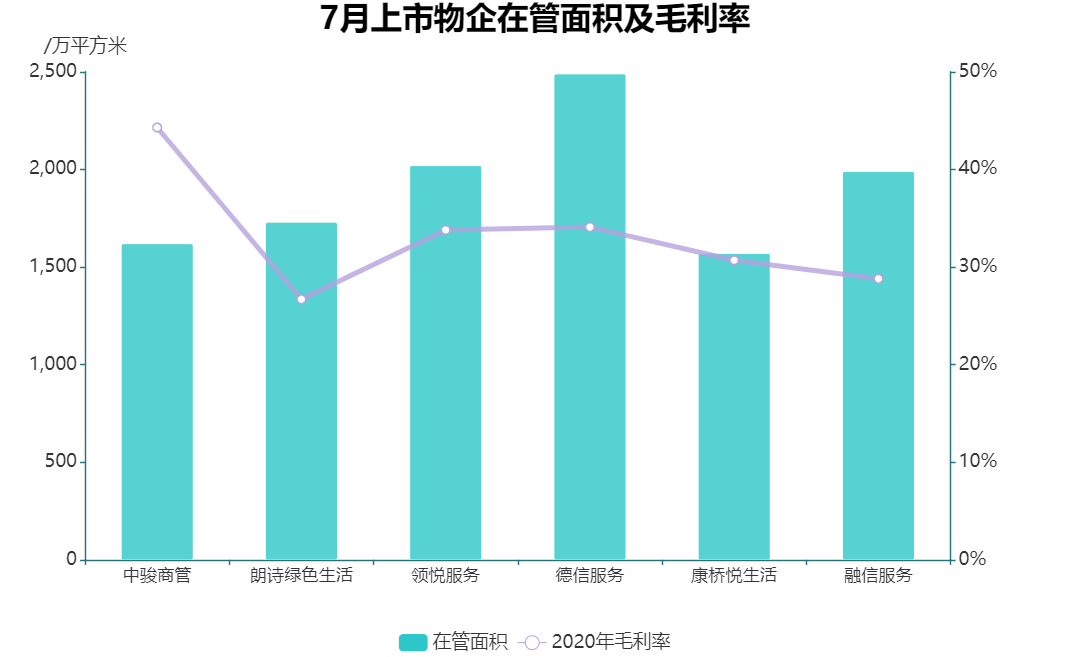 7月份新上市的6家物企分別為中駿商管、朗詩(shī)綠色生活、領(lǐng)悅服務(wù)、德信服務(wù)、康橋悅生活與融信服務(wù),數(shù)量上超過(guò)今年上半年新上市物企總和。
