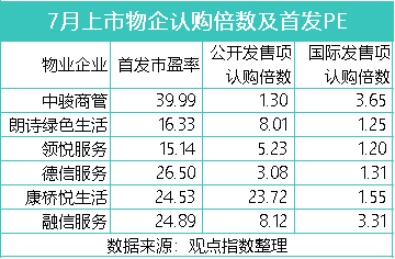 估值方面,7月新上市物企首發(fā)市盈率的平均值為24.6倍,其中中駿商管的市盈率相對(duì)較高,達(dá)到了近40倍。