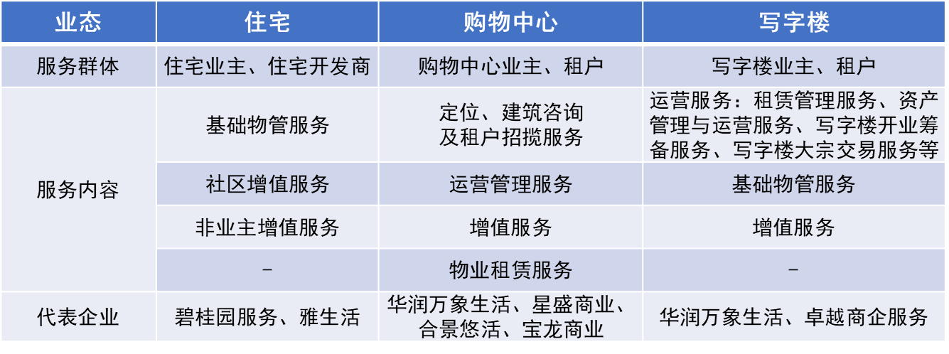 同時,相較住宅物業(yè),商業(yè)物業(yè)的另一核心競爭力在于服務(wù)對象的不同。