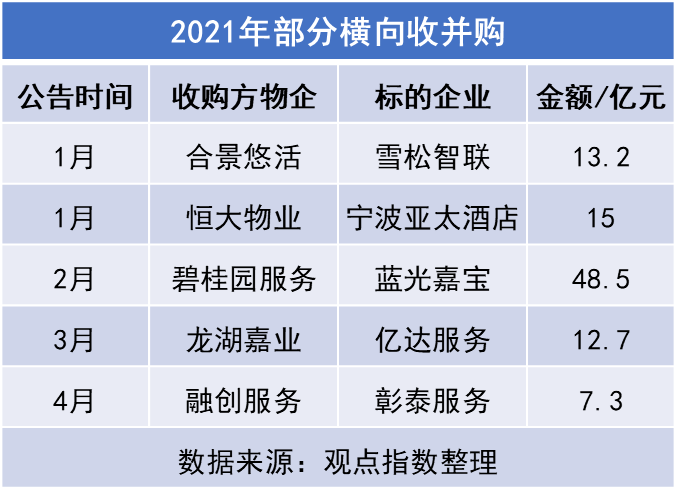 事實上,市場給予物企高估值的當下正是出讓物管資產(chǎn)的最佳窗口期,這也給物管行業(yè)的收并購市場提供更多的標的資源,進一步催化當前的并購烈度。