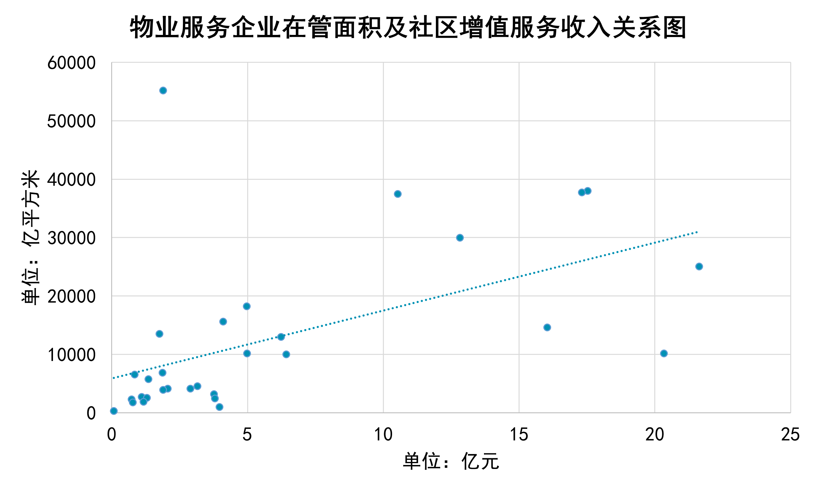 可以認為,物業(yè)服務(wù)企業(yè)的管理面積與其增值服務(wù)收入基本呈現(xiàn)正相關(guān)關(guān)系。