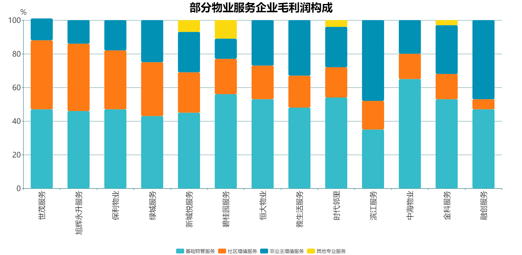 從企業(yè)層面來看,社區(qū)增值服務(wù)與基礎(chǔ)物業(yè)服務(wù)共享人工,具有較高的毛利率,對物業(yè)服務(wù)企業(yè)增收減負的貢獻更加突出。