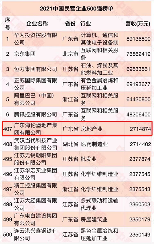 2021中國(guó)民營(yíng)企業(yè)500強(qiáng)排行榜(部分)