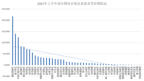 現(xiàn)金及現(xiàn)金等價物50億元以上的企業(yè)僅為8家,分別為:碧桂園服務(wù)、恒大物業(yè)、華潤萬象生活、融創(chuàng)服務(wù)、雅生活服務(wù)、保利物業(yè)、金科服務(wù)和世茂服務(wù)。