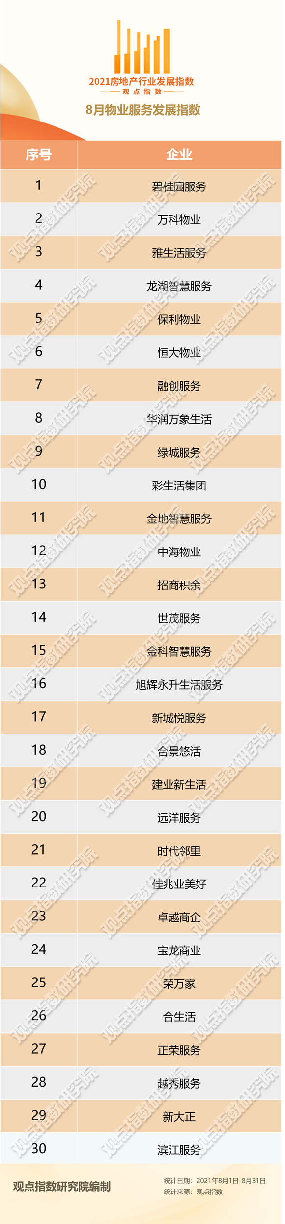 觀點指數(shù) 8月,房企分拆物業(yè)上市熱度不減,金茂物業(yè)及蘇新美好生活向港交所遞表。截至月末,已向港交所遞表的物業(yè)服務(wù)企業(yè)達到25家,當中除了長城物業(yè)是獨立第三方企業(yè)外,剩余24家遞表企業(yè)均有開發(fā)商背景。