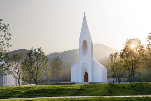 對(duì)于月空·婚禮堂這個(gè)建筑的呈現(xiàn),我覺得這里面有一個(gè)所謂的體系的觀點(diǎn),作為婚禮堂的前端主體,我們希望提取出來(lái)一個(gè)更具有原形化的建筑的原形體系。它看起來(lái)好像我們?cè)?jīng)看到過,但是又不一樣。然后我們進(jìn)一步推演,形成一個(gè)趨向于歐洲傳統(tǒng)西方設(shè)計(jì)的教堂這樣一個(gè)形式。同時(shí),我們考慮到建筑本身是否能帶來(lái)一個(gè)更具有與人的內(nèi)心或者與身體相溝通的東西,為此我們想到一個(gè)柔和的,類似于小的圓形,結(jié)合一個(gè)詞可以叫做它洞穴感,就是人有一種依靠,它可能在這樣一個(gè)生活進(jìn)化過程中,生活一萬(wàn)年或者幾千年。洞穴這個(gè)概念存在我們基因里,我們對(duì)于這種基因的深層,包括有一點(diǎn)像母體,在宇宙中看到一些極致形態(tài),都是環(huán)抱感,這是對(duì)于基因、對(duì)于自然回歸的一種感受。但是我不希望過于符號(hào)化,也是最后提取的這樣一個(gè)狀態(tài),其實(shí)更加呈現(xiàn)的是空感的體現(xiàn)方式??吹皆驴?婚禮堂在阿朵小鎮(zhèn)的呈現(xiàn)和融合,我覺得確實(shí)實(shí)現(xiàn)了我們對(duì)于這個(gè)設(shè)計(jì)的初衷和想法。非常感謝融創(chuàng)給我這樣一個(gè)好的想法和機(jī)會(huì)。
