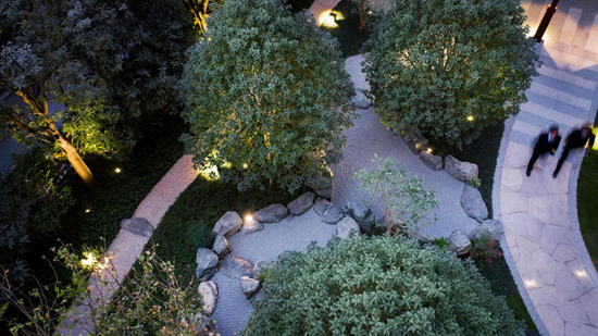 以合景天麟府·瑧林項目為例,這是典型的日式園林風格,由日本枯山水大師——枡野俊明操刀,追崇“雖由人作,宛自天開”的設(shè)計理念,盡量采用的都是自然材料造景,減少人工造景,更富有自然感和身臨其境的感覺。