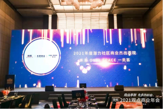 頒獎典禮現(xiàn)場,在全行業(yè)見證下,東原Oval Space 一奧薈憑借優(yōu)異表現(xiàn),榮獲“2021年度潛力社區(qū)商業(yè)杰出表現(xiàn)“。