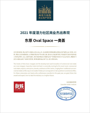 東原Oval Space 一奧薈“2021年度潛力社區(qū)商業(yè)杰出表現(xiàn)”獎項