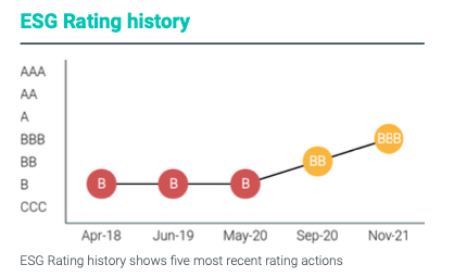 11月23日,全球最大指數公司MSCI(明晟)將旭輝控股(HK.00884)的ESG(環(huán)境、社會及公司治理)評級從去年的“BB”級上調至“BBB”級。這是旭輝的ESG評級連續(xù)兩年穩(wěn)步提升。在各項ESG細分評分中,旭輝的“產品安全與質量”及“企業(yè)治理”兩項尤為突出,顯著優(yōu)于行業(yè)平均水平。