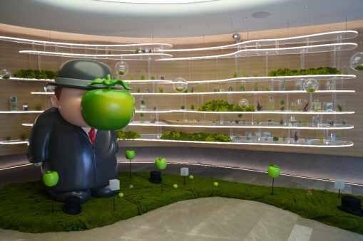 位于坂田地鐵站的智慧TOD商業(yè)產(chǎn)品坂田萬科廣場城市展廳,則開啟了一段神奇的自然綠洲之旅。在此次聯(lián)展中為您帶來了#你好啊,大藝術(shù)家#系列-人類之子瑪格麗特的華南首展秀。這是一場針對后疫情時(shí)代的思考,人類之子站立在展廳的入口處,煙斗、禮帽、蘋果沿途散落,穿梭其間,每個(gè)人都可以跟著人類之子的步伐,一起去探尋大家對理想自然生活的期待,體驗(yàn)自然生活方式新主張。