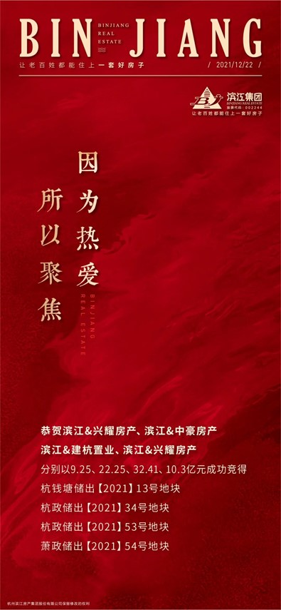 至此,在杭州2021年最后一場集中拍地中,濱江集團連獲4宗寶地,也成為此次土拍獲得土地宗數(shù)最多的開發(fā)商之一。