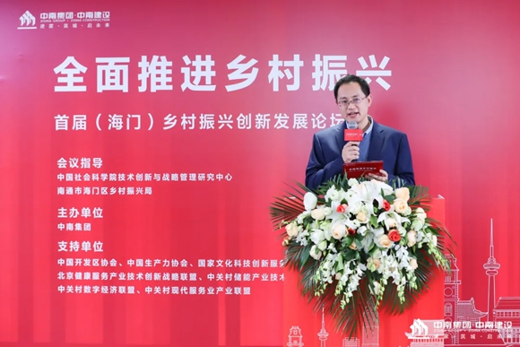 南通市海門(mén)區(qū)委書(shū)記郭曉敏受邀率先致辭,她在致辭中指出,海門(mén)是清末狀元、著名實(shí)業(yè)家、教育家,張謇先生的故里,是全國(guó)著名的“科技之鄉(xiāng)”、“教育之鄉(xiāng)”、“建筑之鄉(xiāng)”、“平安之鄉(xiāng)”和“生態(tài)之城”。十九大以來(lái),海門(mén)緊扣鄉(xiāng)村振興20字總要求,傳承發(fā)揚(yáng)張謇“村落主義”思想,大力實(shí)施鄉(xiāng)村振興示范建設(shè)行動(dòng),構(gòu)建“2+3+N”政策體系,在高起點(diǎn)上開(kāi)啟了農(nóng)業(yè)農(nóng)村現(xiàn)代化新征程。中南集團(tuán)是海門(mén)的龍頭企業(yè),是“以企帶村”、“村企聯(lián)建”的典范。在全面推進(jìn)鄉(xiāng)村振興過(guò)程中,創(chuàng)造了實(shí)業(yè)賦能鄉(xiāng)村振興的“中南村模式”。