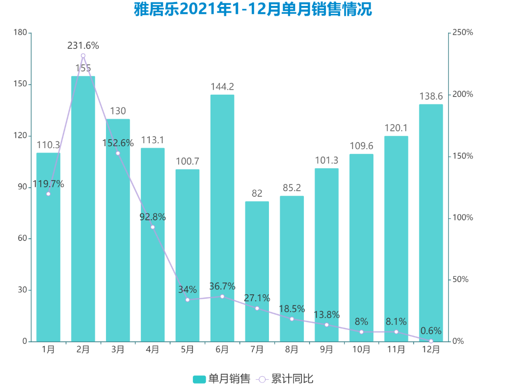 但最終,2021年全年雅居樂錄得累計銷售1390.1億元,目標(biāo)完成率僅92.67%,同比幅度縮窄至0.6%,相比2020年近17%的漲幅顯著縮小。