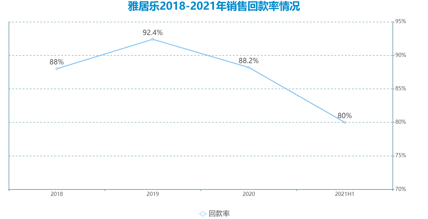 據(jù)悉,8月份時雅居樂照例披露回款率時就顯示,2021年回款率降至80%——而在2020年這一指標(biāo)為88%。