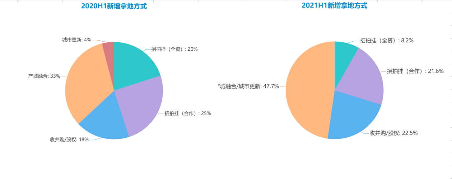 對比2020年,在獲取途徑方面,雅居樂通過招拍掛拿地的比例從過往的45%收窄至29.8%,通過產(chǎn)城和城更獲取的比例則從37%增加至47.7%。