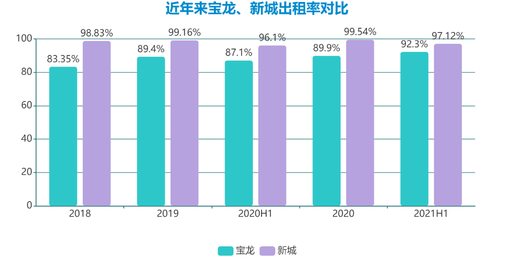 據(jù)悉。2021年上半年寶龍商業(yè)平均租金水為0.58元\平\天,雖然較2020年底有一定上漲,但與行業(yè)領先企業(yè)有較大差距。