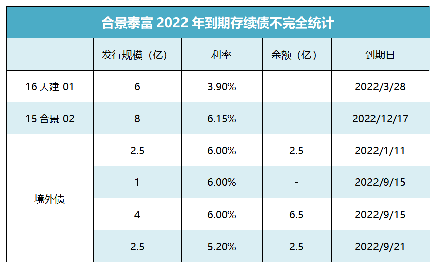 據(jù)標(biāo)普披露,合景泰富2022年末前還將有約160億元的債券一次性到期或可回售債券進(jìn)入回售期。